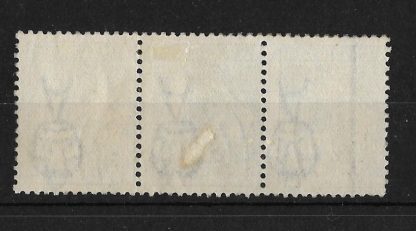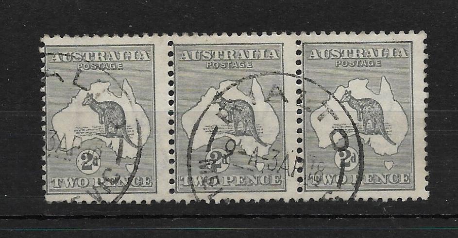 Australia 1915 Two Pence Kangaroo strip of three with inverted watermark used. Scarce multiple. SG35bw. Cat £96.