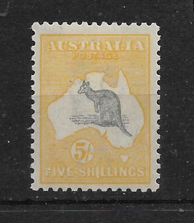Australia 1918 Kangaroo Five Shillings third watermark mounted mint. SG 42. Cat £350. One hinge remainder.