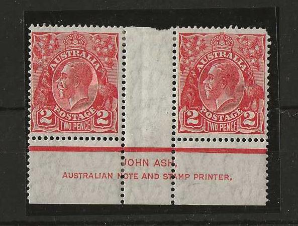 Australia 1931 George V Two Pence (C of A watermark) Imprint pair mounted mint. (Mounted in margin, both stamps just touched). SG 127. BW 103z. Cat Aus $60.