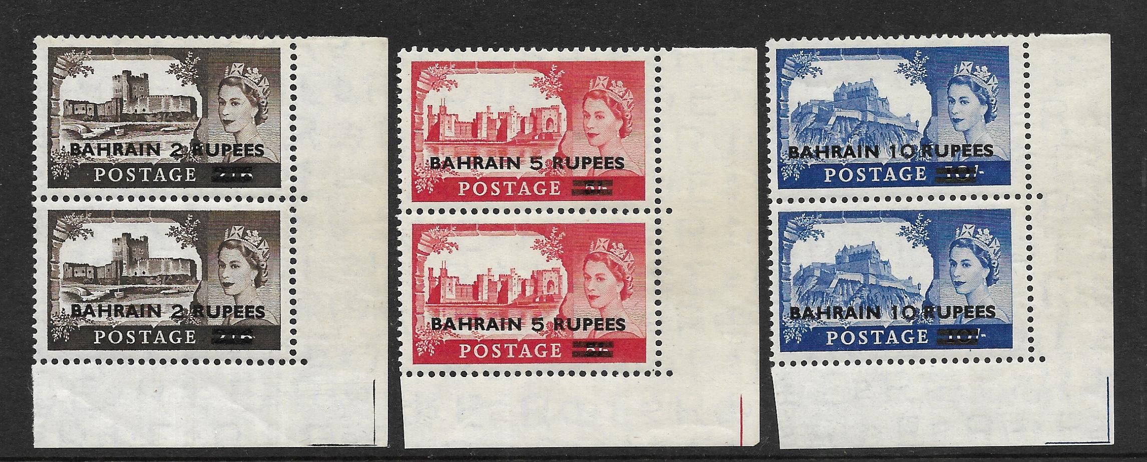 Bahrain QEII 1955 High values Die I pairs SG94/96 unmounted mint quantity