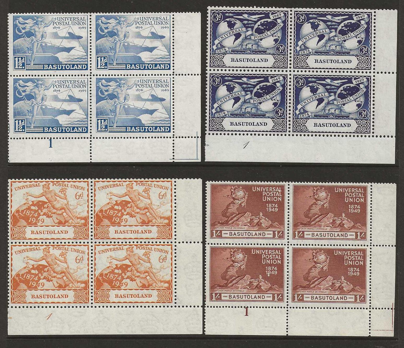 Basutoland 1949 UPU plate 1 blocks 4 SG 32/35 u/mint quantity