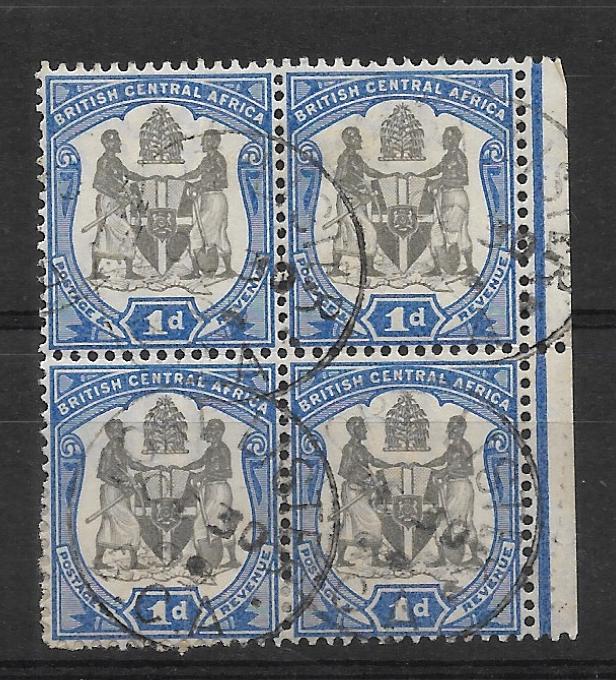 BCA/Nyasaland 1897 One Penny block 4 with Fort Lister postmark quantity