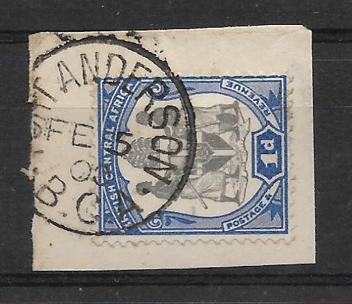BCA/Nyasaland 1897 One Penny on piece with a Fort Anderson Type 5z postmark.