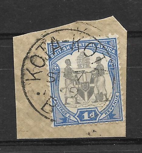 BCA/Nyasaland 1897 One Penny on piece with a Kota Kota Type 5z postmark