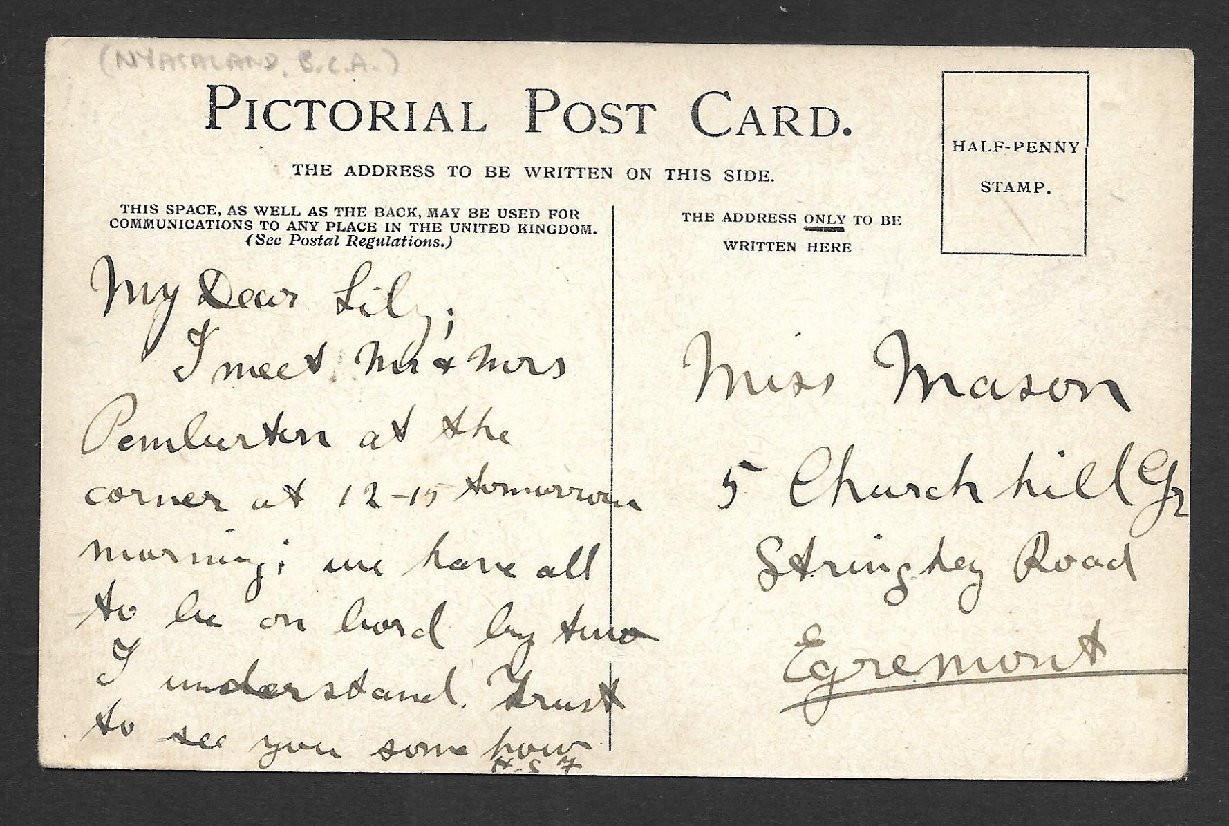 BCA/Nyasaland Lake Nyasa Missionary Transport postcard of SS Chauncy Maples