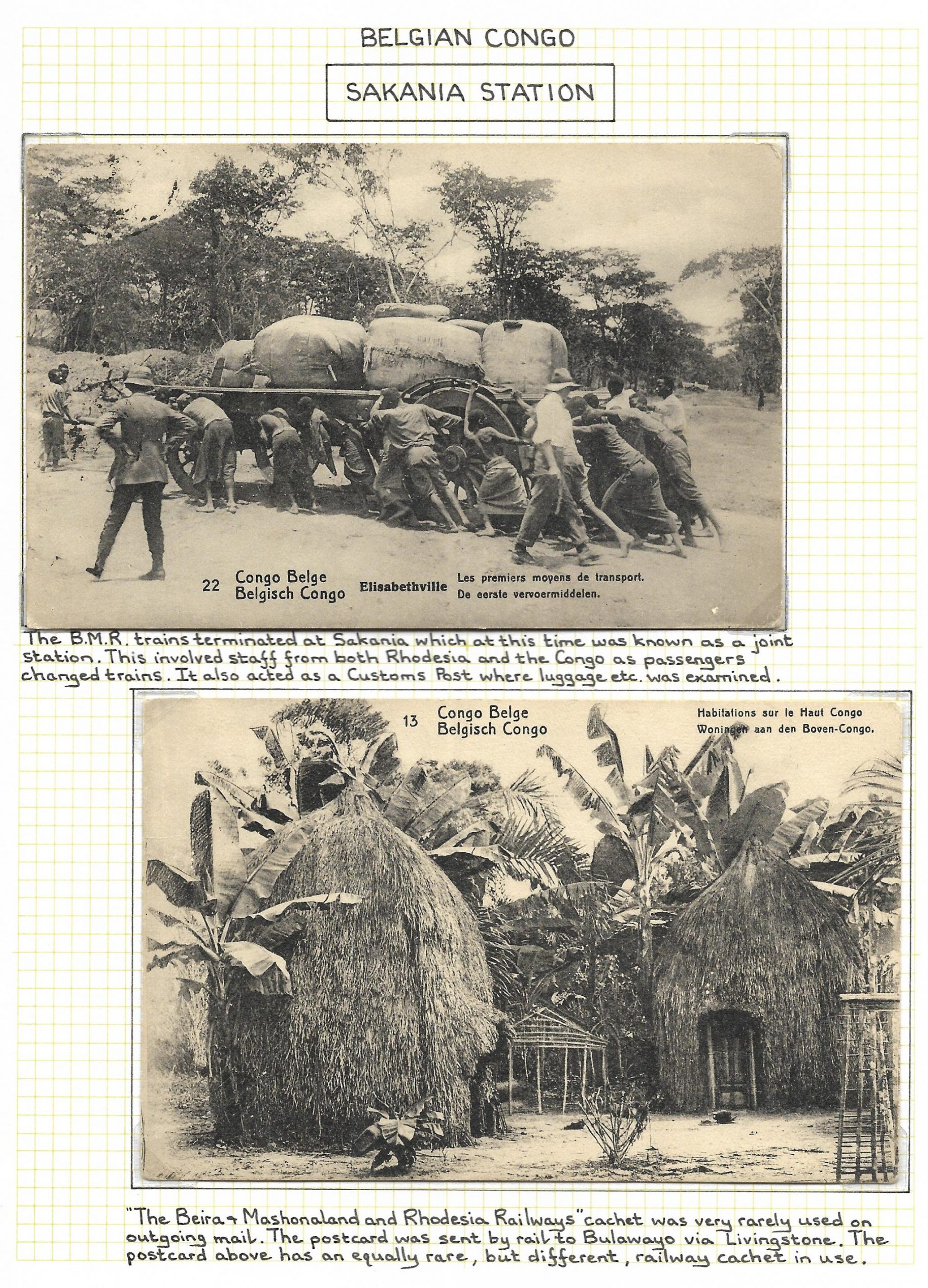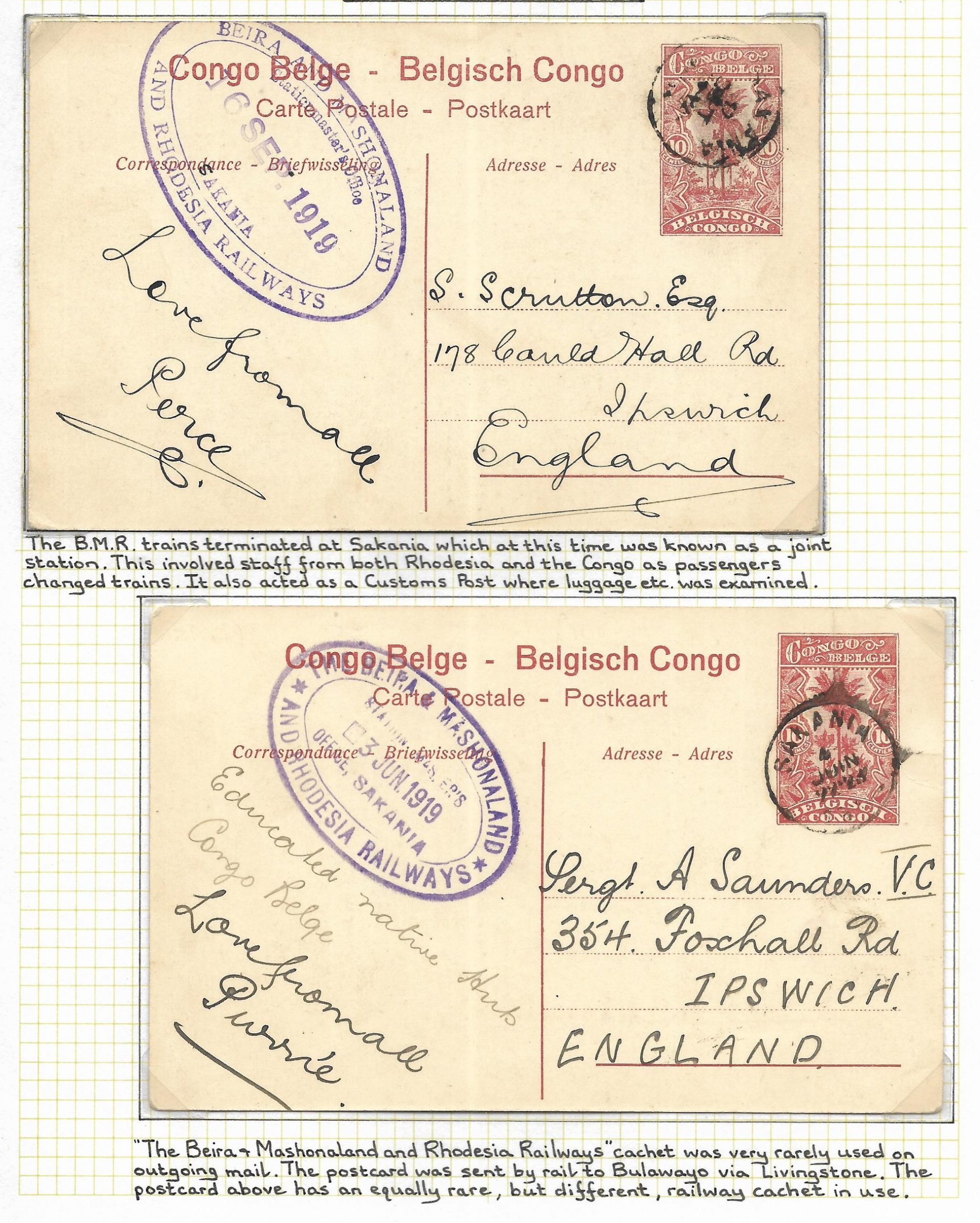 Belgium Congo two postcards each with a different B&M R Railway cachets in purple. Very rare. Beira and Mashonaland railway.