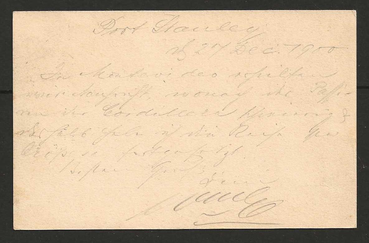 Falkland Islands 1900 Queen Victoria One Penny Post Card commercially used to Germany with Code C sideways inverted, not recorded by Heijtz.