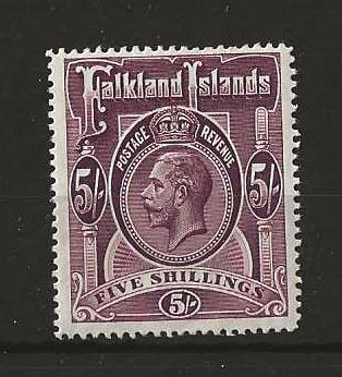 Home / British Commonwealth / Falkland Islands / Falkland Islands 1921 GV Five Shillings SG 67mint
