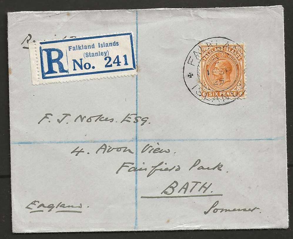 Falkland Islands 1925 GV registered cover to England