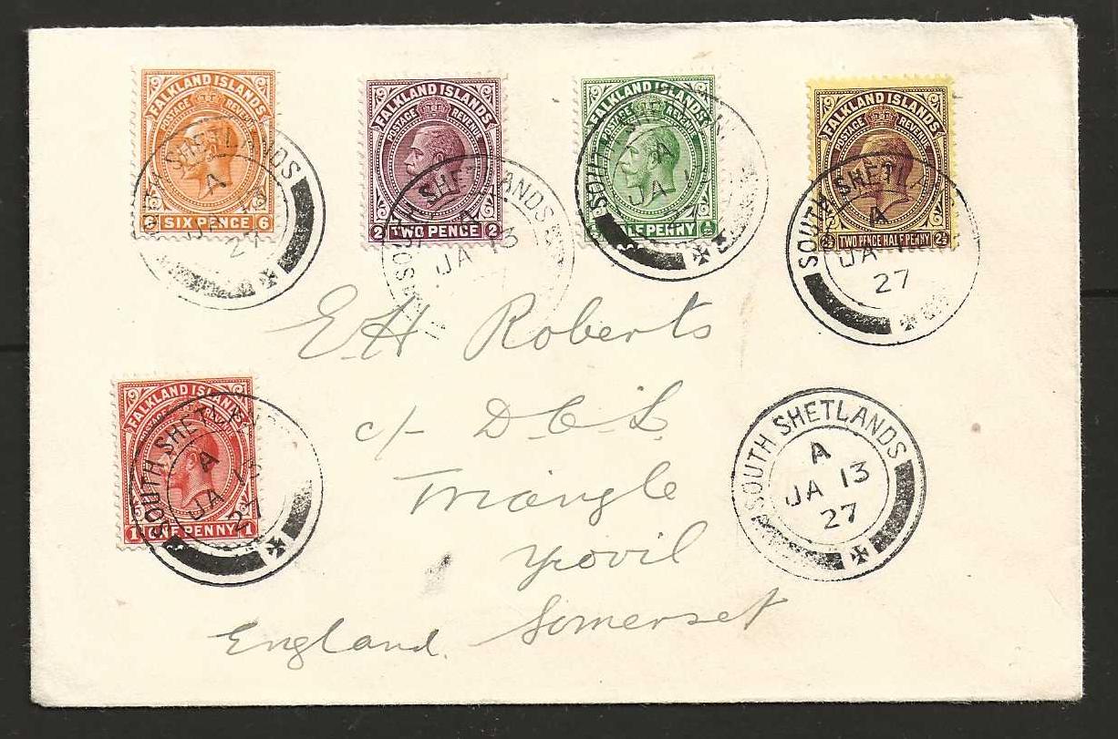 Falkland Islands 1927 GV Commercial cover to England from South Shetlands quantity