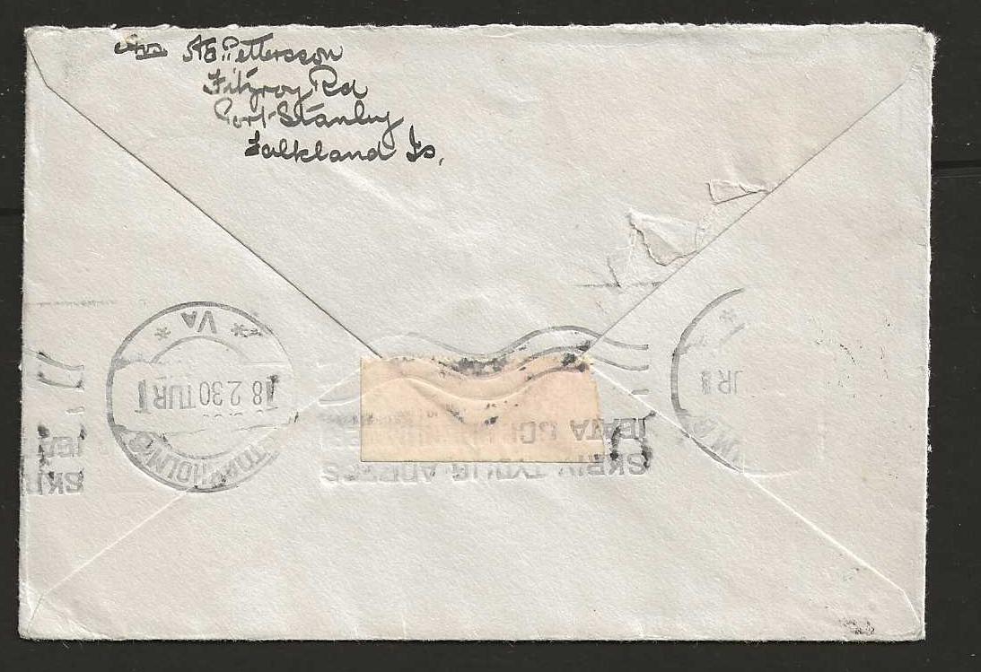 Falkland Islands 1927 GV uprated postal envelope from Port Stanley to London