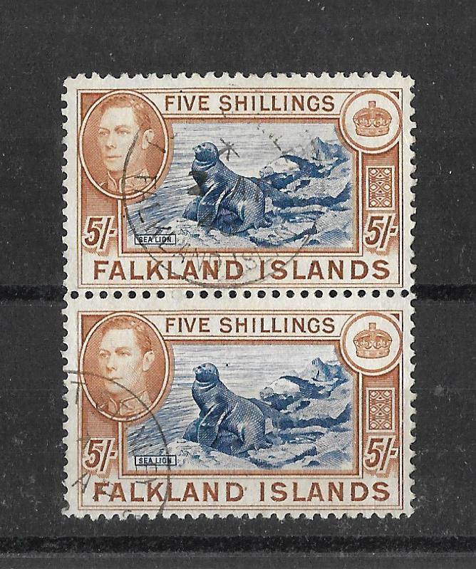 Falkland Islands 1938 George VI Five Shillings (Sealions) fine used pair. SG 161. Cat £300.