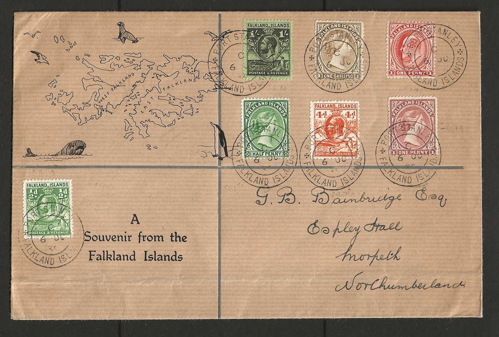Falkland Islands 1939 GVI Illustrated souvenir cover to England unusual quantity