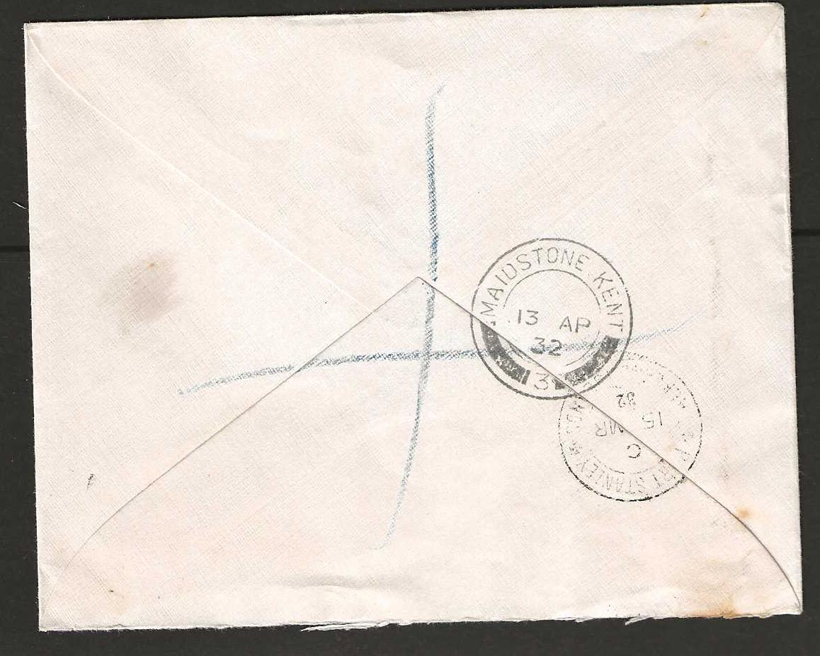 Falkland Islands KGV Registered Cover to Kent from Fox Bay scarce