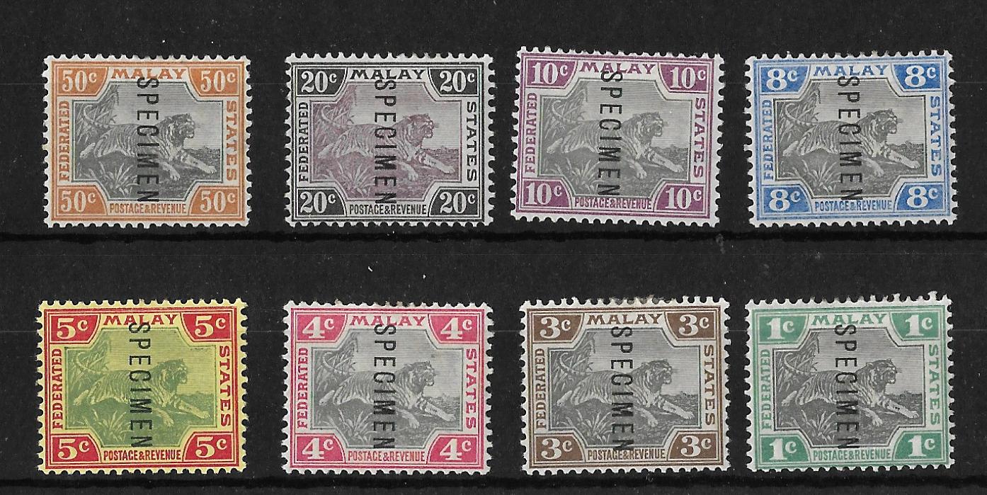 Federated Malay States 1900 Tigers overprinted Specimen mounted mint