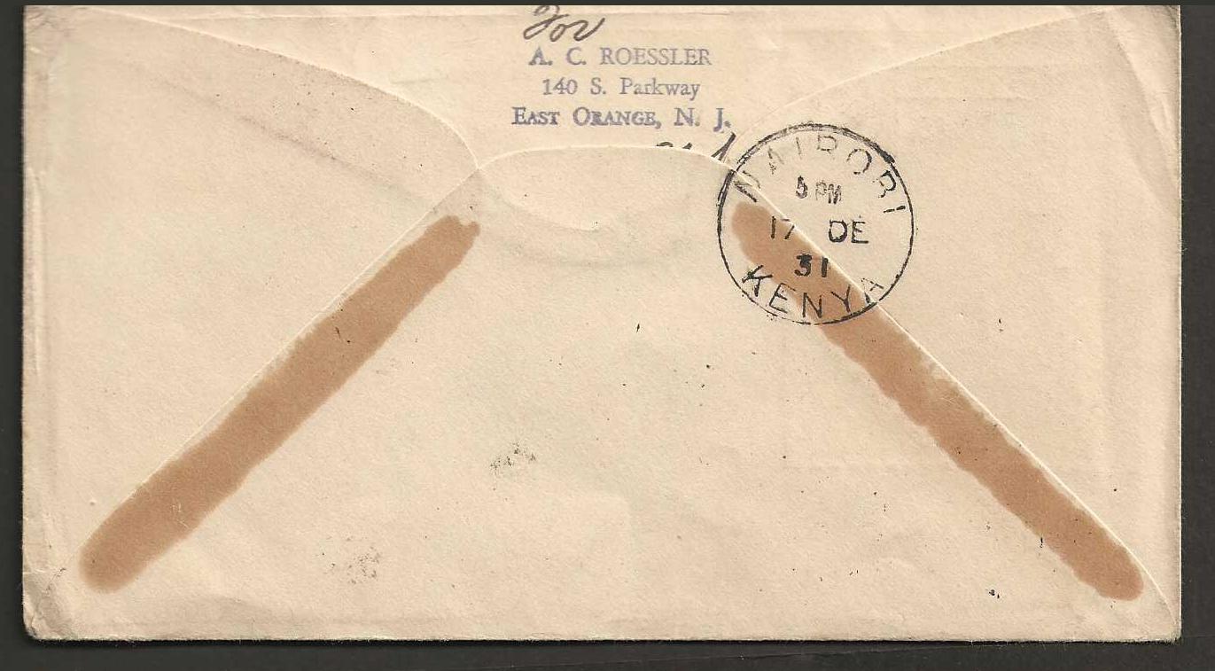 Great Britain Imperial Airways 1931 First Flight cover from London to Nairobi. USA Private issue, most unusual.
