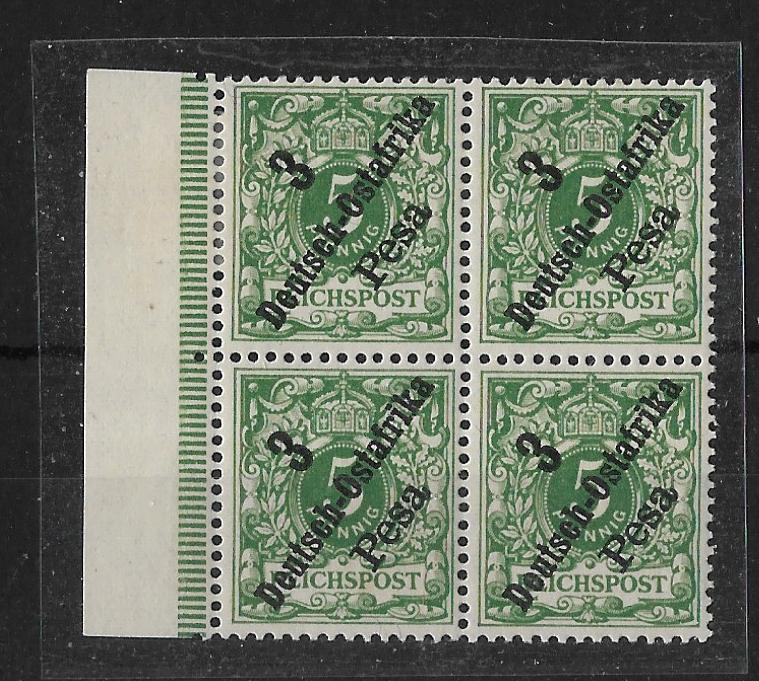 German East Africa 1896 Three Pesa marginal block of four unmounted mint. Michel 7. Cat 28 Euros.