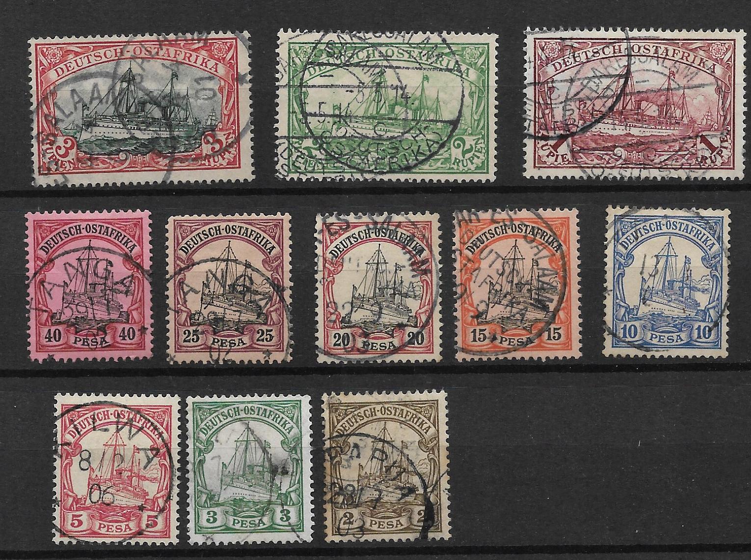German East Africa 1901 Two Pesa to Three Rupien used. Stamps are good/fine used. Michel 11/21. Cat 450 Euros.