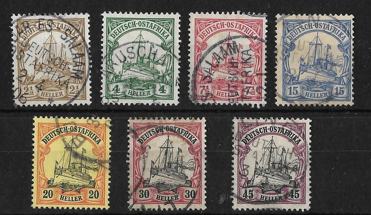 German East Africa 1905 Two and a Half Heller to Forty Five Heller used. Michel 22/28. Cat 90 Euros+