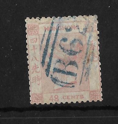 Hong Kong 1862 Queen Victoria Forty Eight cents good used with blue B62 cancel. SG 6. Cat £375.