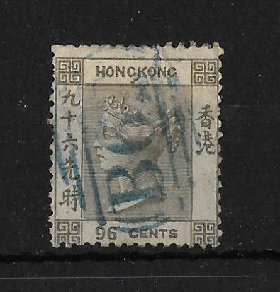 Hong Kong 1862 Queen Victoria Ninety Six cents good used with a blue B62 cancel. SG 7. Cat £450.