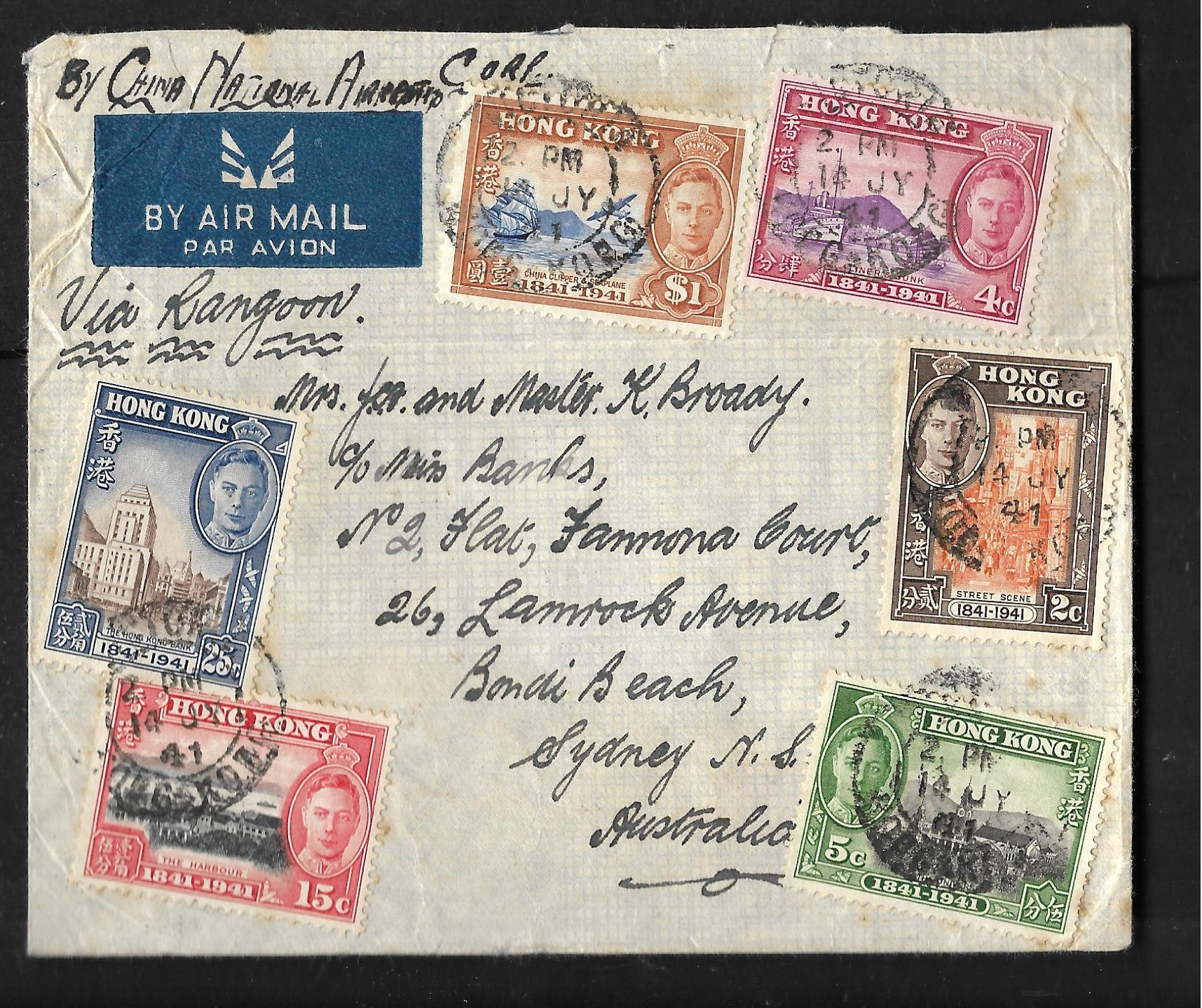 Hong Kong 1941 Centenary set on cover to Australia quantity