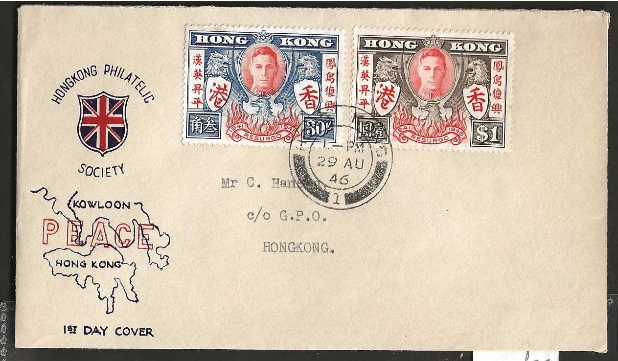 Hong Kong 1946 Victory issue on Illustrated First Day cover quantity