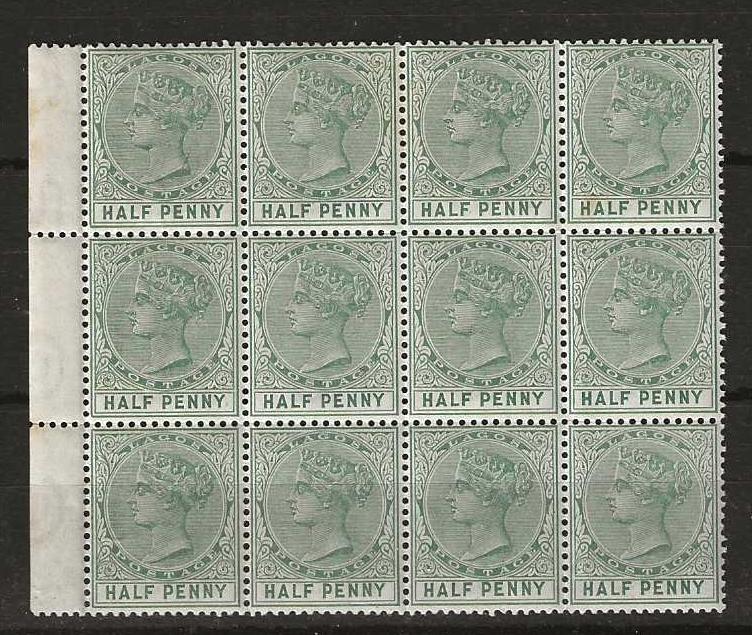 Lagos 1884 Queen Victoria Halfpenny block of twelve unmounted mint. SG 21.