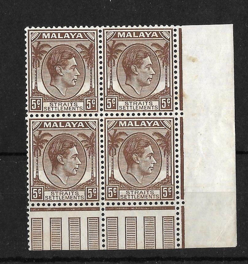 Malaya/Strait Settlements 1937 GVI Five Cents Die II block SG 297 unmounted mint