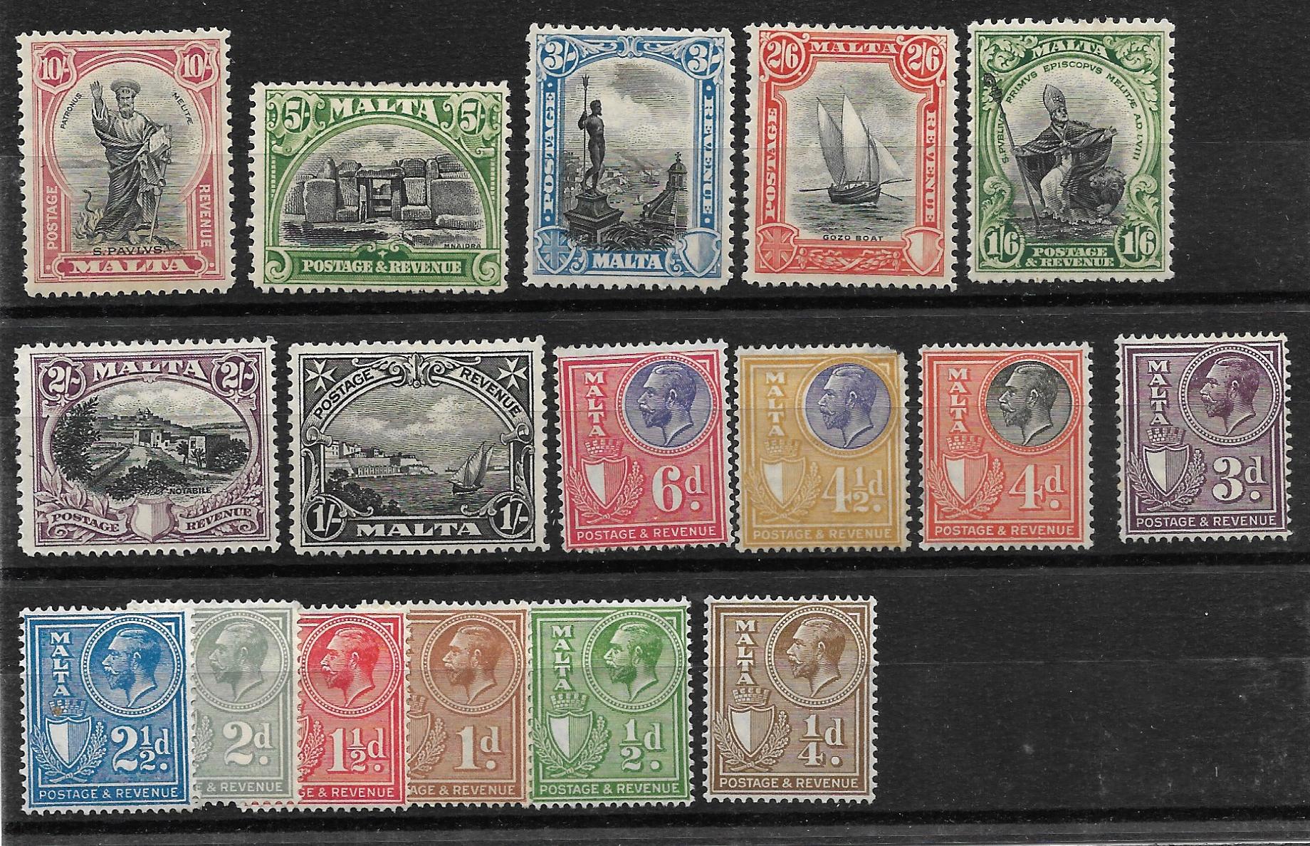 Malta GV 1930 issue SG 193/209 mint