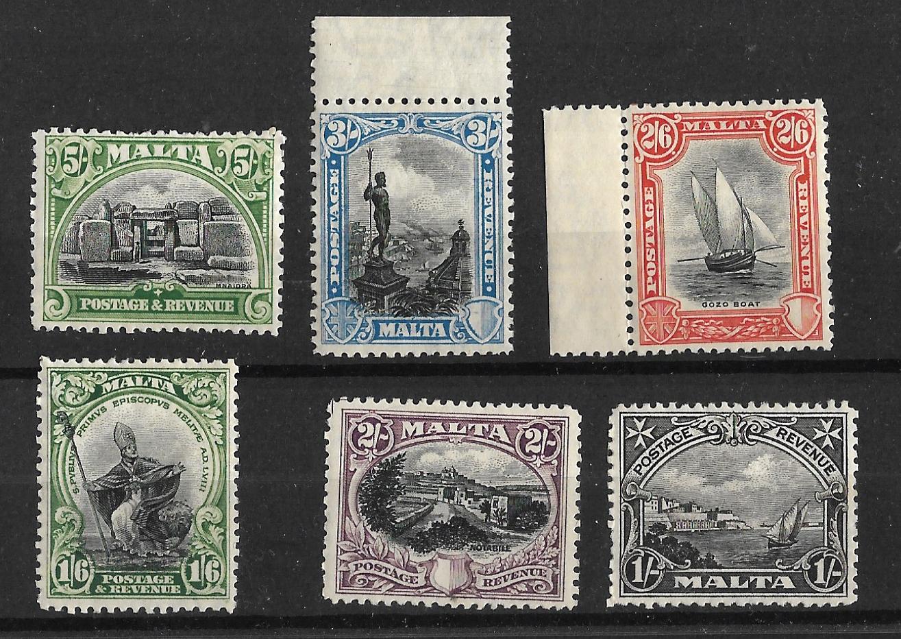 Malta George V 1930 issue (One Shilling to Five Shillings unmounted mint. SG 203/208. Cat £164+.