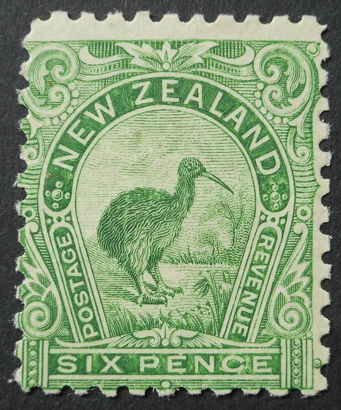 New Zealand 1899 Six Pence (Deep Green) perf 11 no watermark mint. Stamp is mounted mint/mint hinged. (One hinge mark). SG 264. Cat £85.
