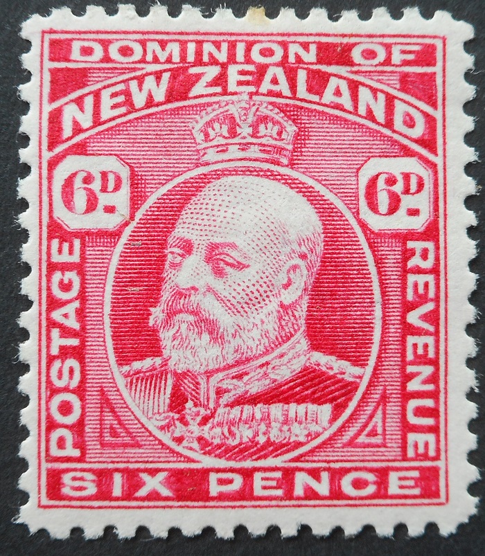 New Zealand 1915 Edward VII Six Pence 14×13½ (comb perf) mint. Stamp is mounted mint (One hinge mark and has a toned perf on rear). SG 403. Cat £75.