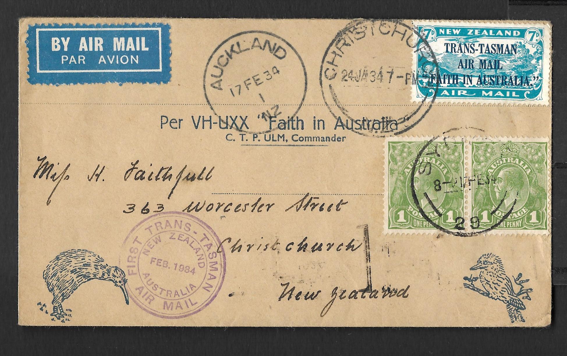 New Zealand 1934 Trans-Tasman First Flight on Illustrated cover.