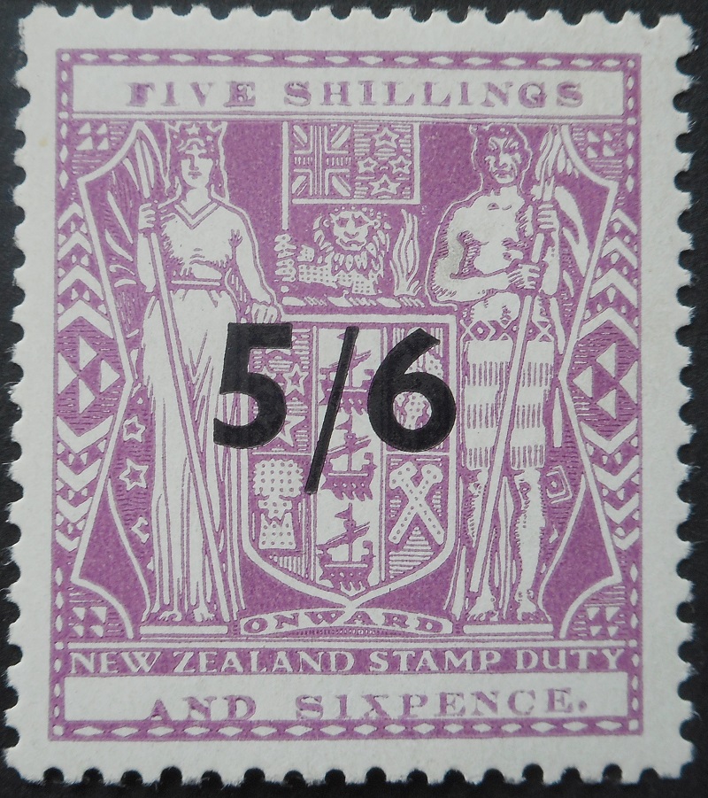 New Zealand 1944 Five Shillings and Six Pence overprint mounted mint. SG F214. Cat £70. (One hinge mark).