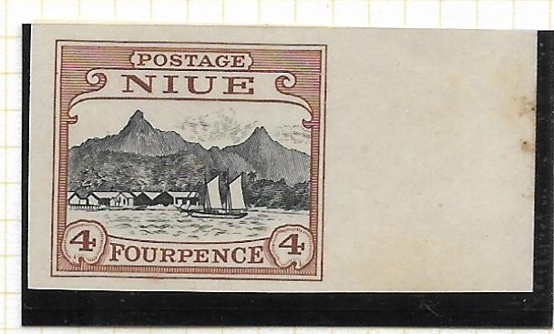 Niue 1925 Four Pence single Plate Proof of whole design in issued colours, mint no gum. SG 47.