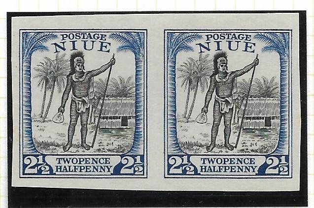 Niue 1925 Two and Halfpence Plate Proof pair in issued colours SG 46 mint no gum