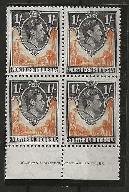 North Rhodesia 1938 GVI One Shilling Imprint block SG 40 nmounted mint quantity