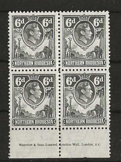 North Rhodesia 1938 GVI Six Pence Imprint block SG 38 unmounted mint quantity