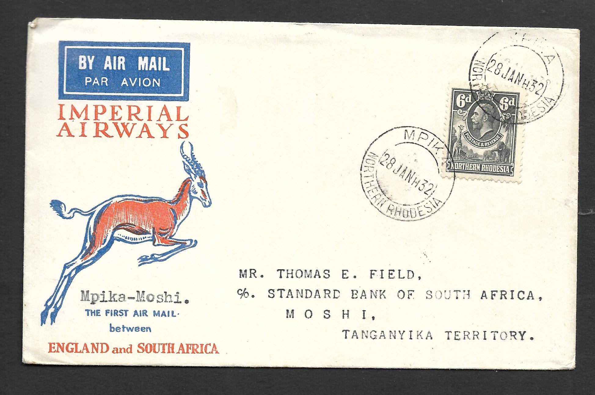 Northern Rhodesia 1932 Imperial Airways cover Mpika to Moshi quantity