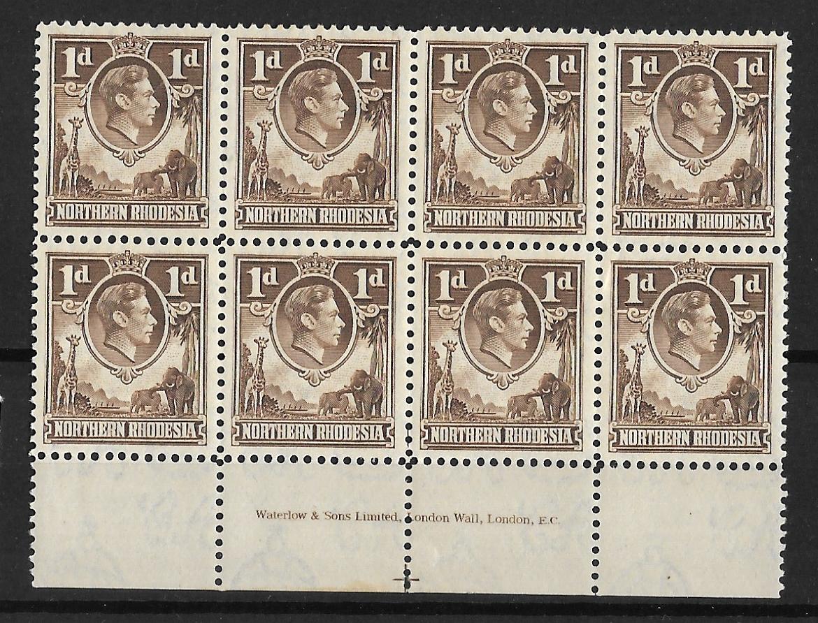 Northern Rhodesia 1938 GVI One Penny Imprint block 8 mint