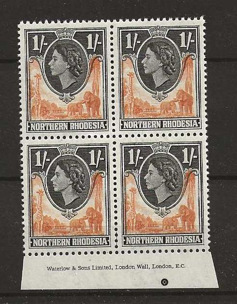 Northern Rhodesia 1953 QEII One Shilling Imprint block SG 70 unmounted mint
