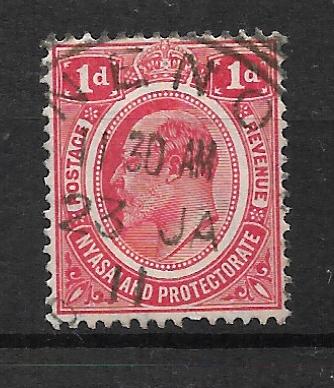Nyasaland 1911 EVII One Penny with NENO Squared Circle Type 6z (Time/Month/Day) postmark. Dated 23 JA 11.