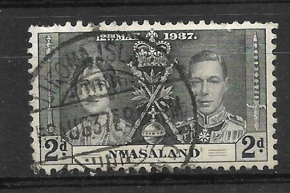 Nyasaland 1937 George VI Coronation Two Pence with Likoma Island Type 15 postmark.