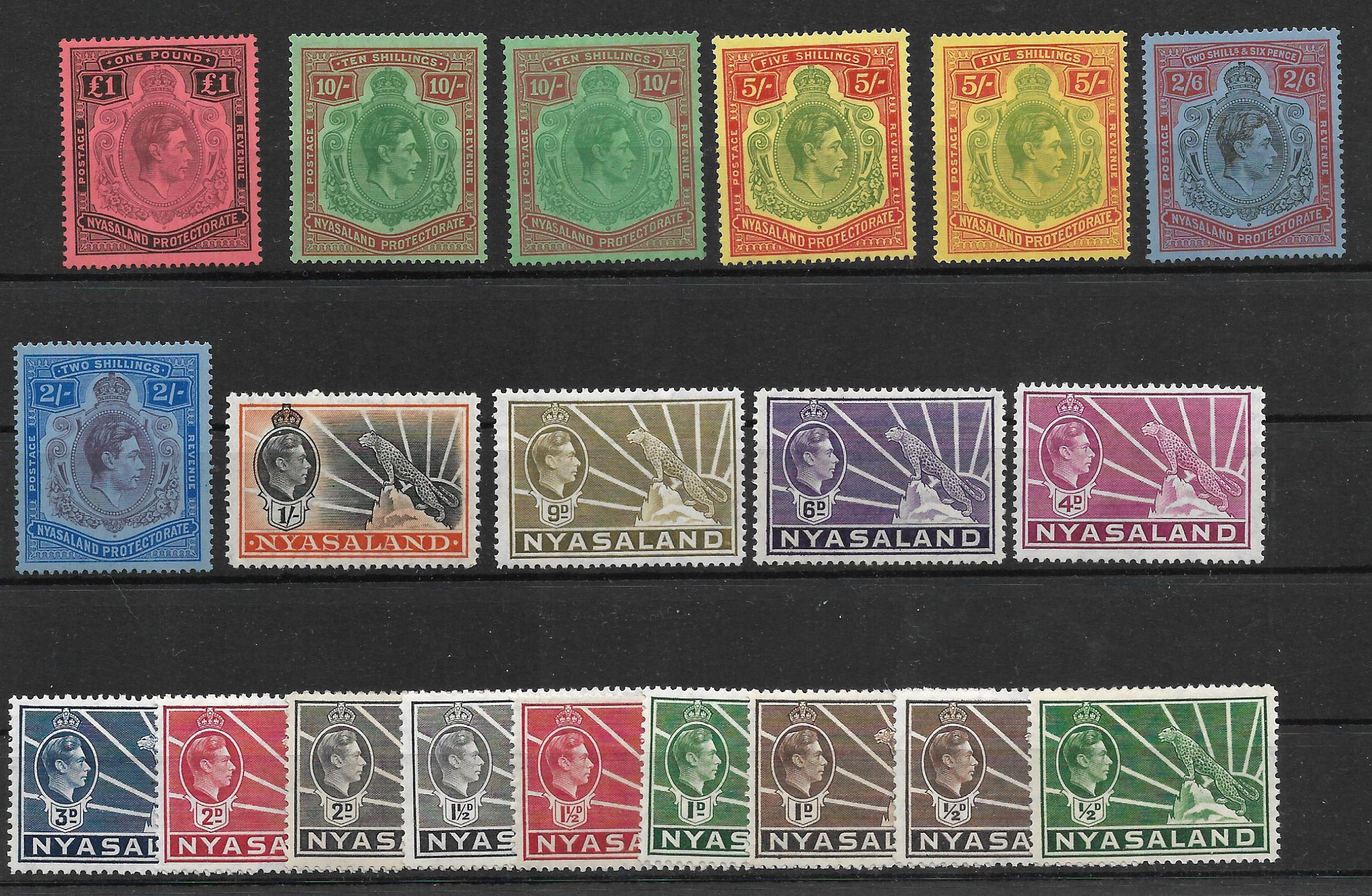 Nyasaland 1938 George VI complete set of twenty to One Pound lightly mounted mint. SG 130/143. (Includes SG 142a). Cat £745.