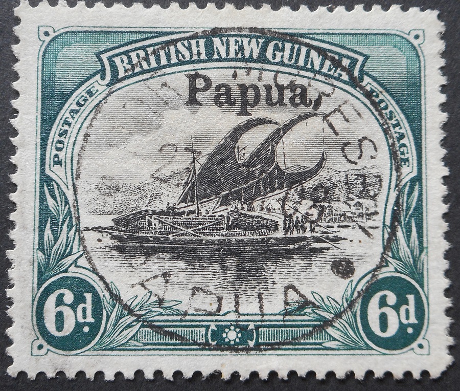 Papua 1906 Six Pence large overprint used. Stamp is fine used with a PORT MORESBY postmark. SG 18. Cat £48.