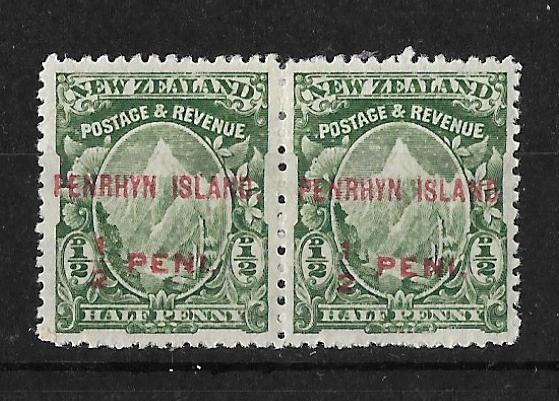 Penrhyn Island 1902 Edward VII Half Peni overprint pair mounted mint. SG 4/4a. Cat £150.