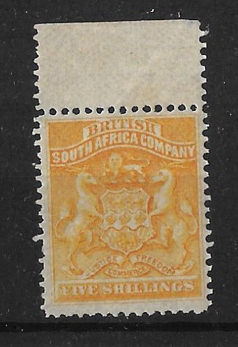 Rhodesia 1892 Small Arms Five Shillings with top margin unmounted mint. SG 8. Cat £90.