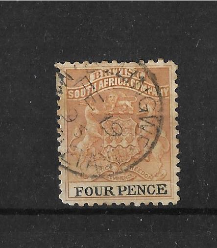 Rhodesia 1895 Four Pence with a BELINGWE Matabeleland (SC) postmark. Dated FE 1996. Rated very rare.