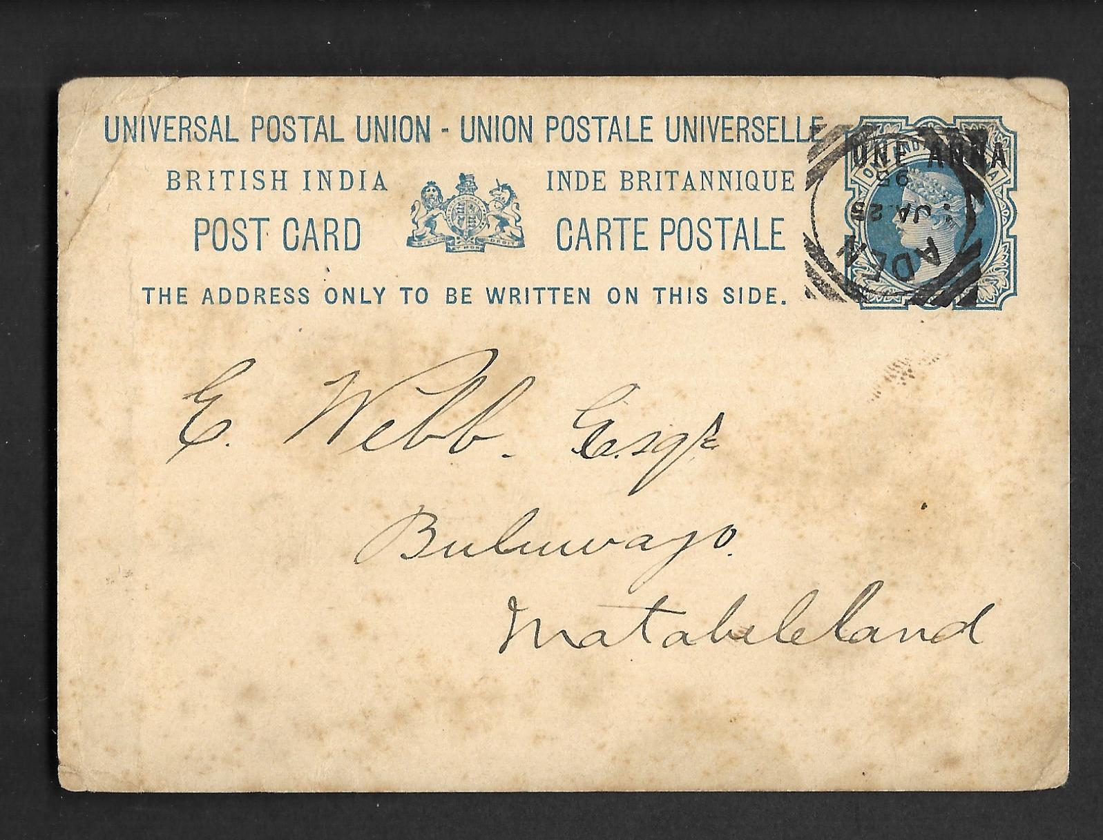 Rhodesia 1895 Incoming Mail from Aden to Bulawayo